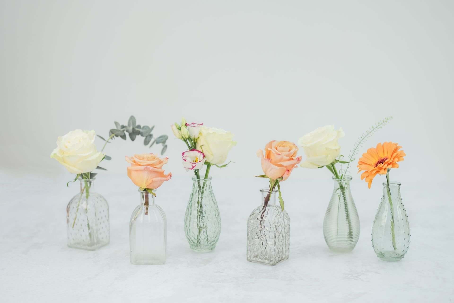 Glass vases, have many uses from holding a full floral arrangement or use them to display single stems in groups which makes a pretty impact.